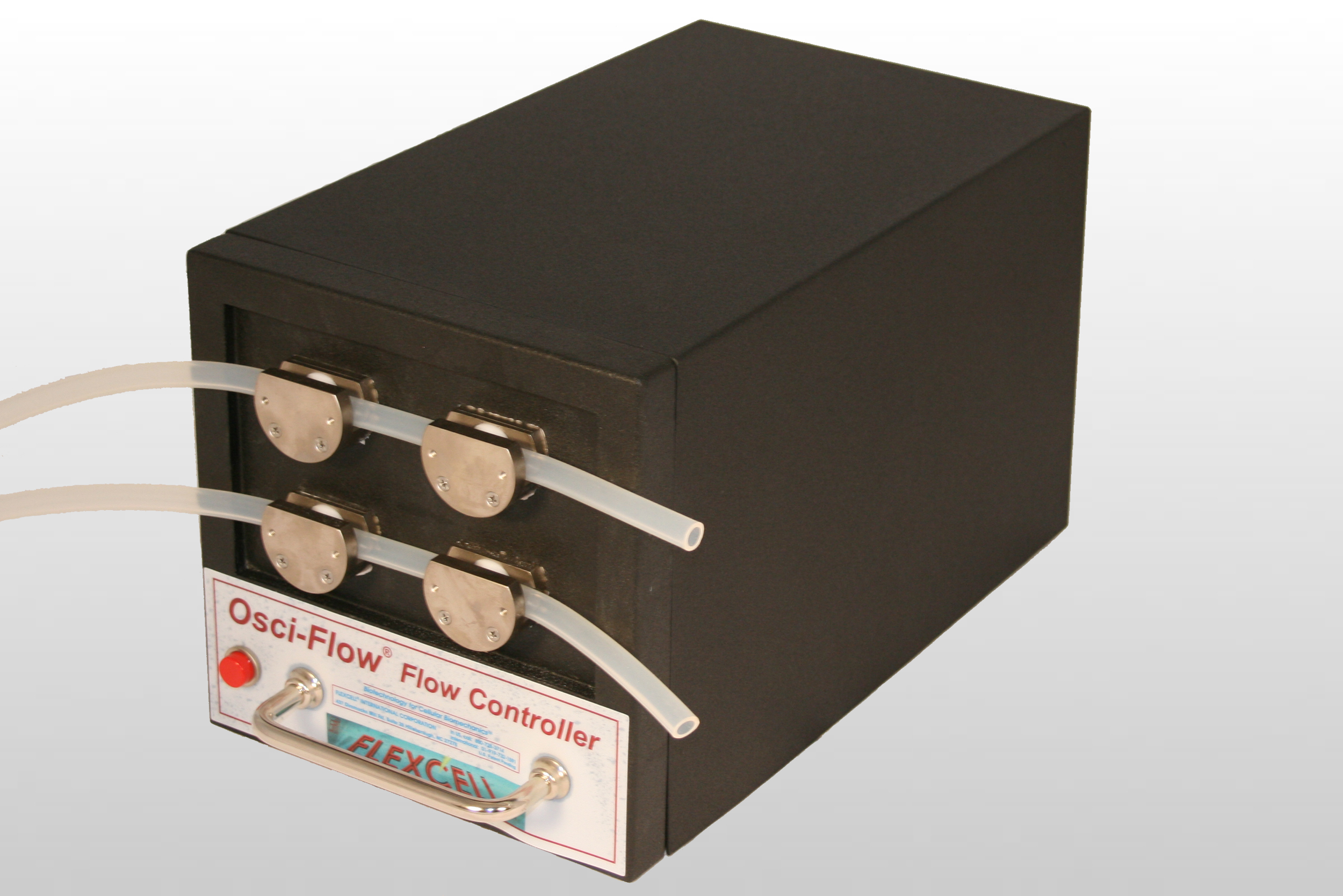 The Osci-Flow® is a software-controlled valve-operated device designed to provide oscillatory or start-stop flow patterns to cells cultured in the Streamer®, FlexFlow or other perfusion devices. The Osci-Flow® device is able to regulate flow both in an oscillatory (flow reversal) manner and in a pulsatile (square wave) mode, where the flow is stopped and then restarted after a designated period of time. The StreamSoft software allows the user to regulate frequency of oscillation or pulsatile patterns, as well as shear stress levels applied to cells.