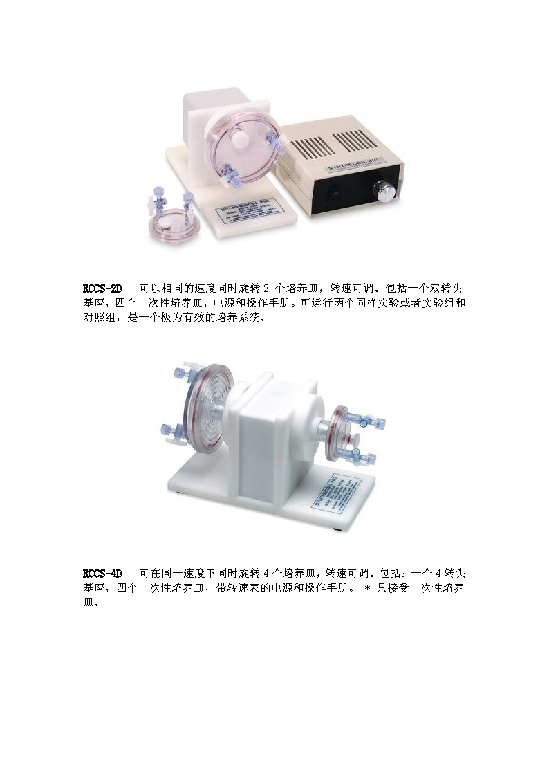 美國Synthecon RCCS-RCMW旋轉(zhuǎn)微重力三維細(xì)胞培養(yǎng)系統(tǒng)已經(jīng)成為應(yīng)用微載體技術(shù)進(jìn)行細(xì)胞大規(guī)模擴(kuò)增的一種較常用細(xì)胞培養(yǎng)系統(tǒng)。該系統(tǒng)是基于美國航空航天局為模擬空間微重力效應(yīng)而設(shè)計(jì)的一種三維細(xì)胞培養(yǎng)系統(tǒng)。該Synthecon RCCS-RCMW旋轉(zhuǎn)微重力三維細(xì)胞培養(yǎng)系統(tǒng)既可以用于微載體大規(guī)模細(xì)胞培養(yǎng),又能在其內(nèi)培育細(xì)胞與支架形成的三維空間復(fù)合體。至今,近百種組織細(xì)胞均在該系統(tǒng)內(nèi)成功進(jìn)行了大規(guī)模擴(kuò)增。