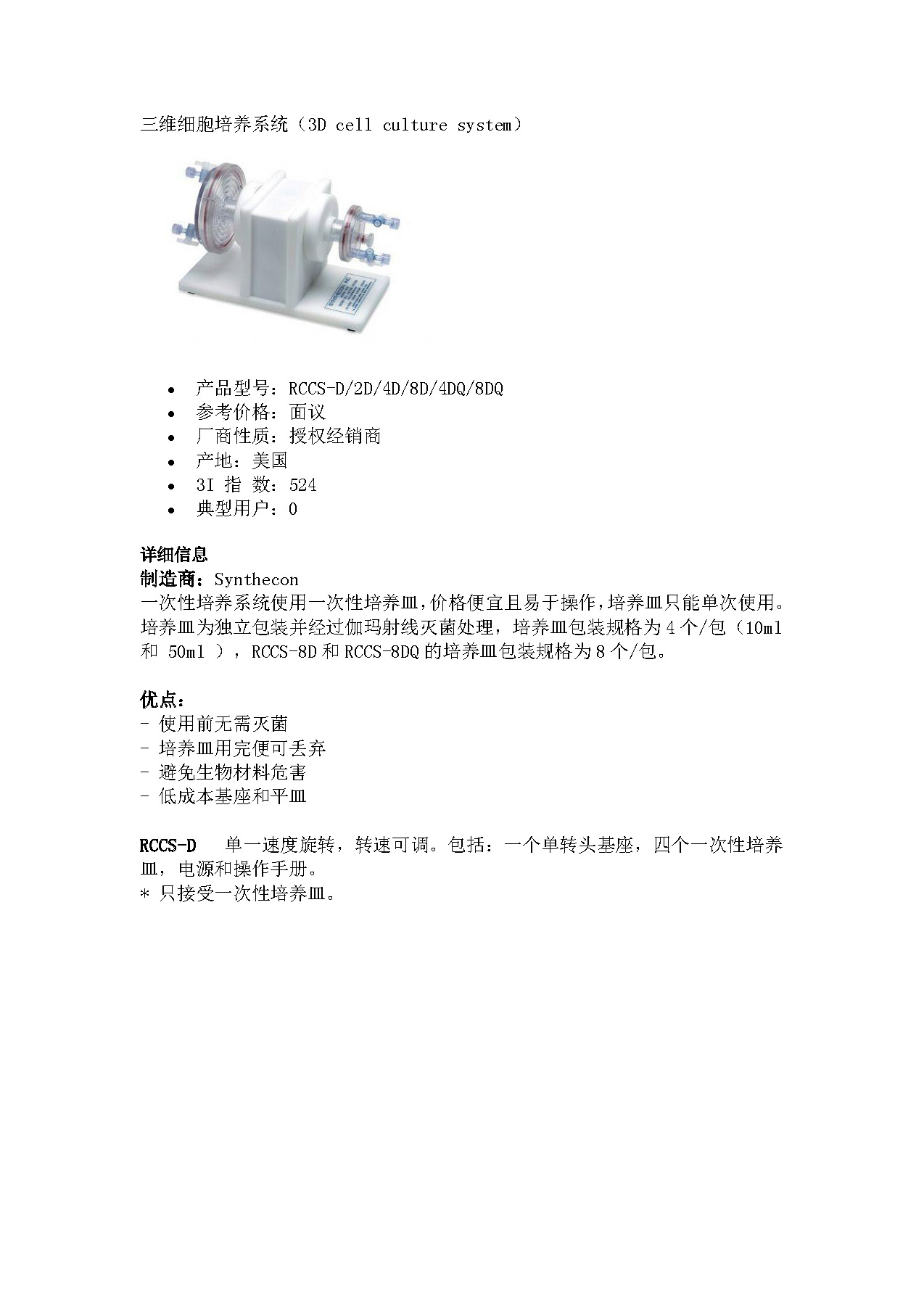 美國Synthecon RCCS-RCMW旋轉(zhuǎn)微重力三維細(xì)胞培養(yǎng)系統(tǒng)發(fā)明于美國NASA,該系統(tǒng)應(yīng)用面j廣,從癌癥和愛滋病研究,到組織工程和工業(yè)制藥。該系統(tǒng)具有普通培養(yǎng)裝置wu可比擬的三大特點(diǎn):
