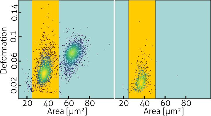 每個(gè)細(xì)胞被同時(shí)拍照、分析和儲存。 這允許通過它們的光學(xué)特性來找到小亞群或區(qū)分細(xì)胞。 另外可以研究像表面拓?fù)浠蚣?xì)胞對光的衰減的形態(tài)特性。