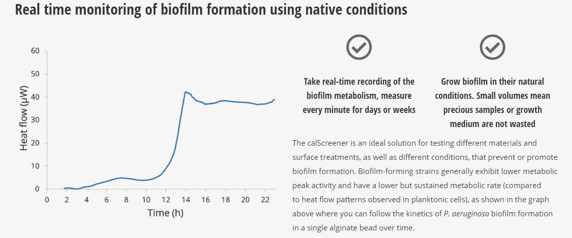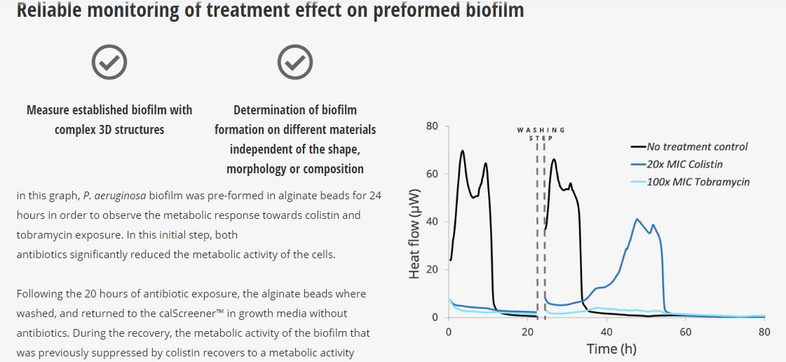 臨床上大多數(shù)抗菌藥物敏感性試驗(yàn)都是在瓊脂平板或肉湯稀釋試驗(yàn)中進(jìn)行的,這些試驗(yàn)不能代表微生物會引起感染的環(huán)境。 微量量熱法是一種非常靈活的技術(shù),wu論使用哪種介質(zhì),都可以測量微生物的代謝。 實(shí)際上,微生物可能在上皮層和上皮層上生長,并且calScreener仍然能夠檢測對任何抗菌劑的反應(yīng)。 此功能顯著拓寬了測試抗菌劑的不同方法。