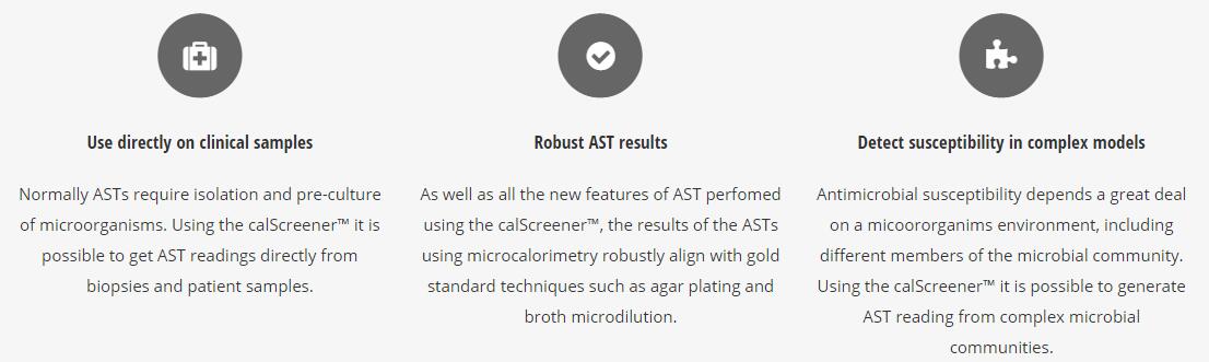 以及使用calScreener?進(jìn)行的AST的新功能,使用微量量熱法的AST的結(jié)果與瓊脂平板和肉湯微稀釋等黃jin標(biāo)準(zhǔn)技術(shù)wanquan吻合。