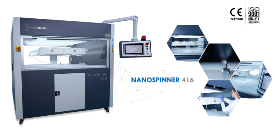 Inovenso使用特的專利“混合電紡技術(shù)”。這項(xiàng)新技術(shù)結(jié)合了基于針的技術(shù)和wu針技術(shù)的點(diǎn),這些點(diǎn)包括:高生產(chǎn)效 一、N2 416機(jī)型 ,1m寬 ,136個(gè)噴頭