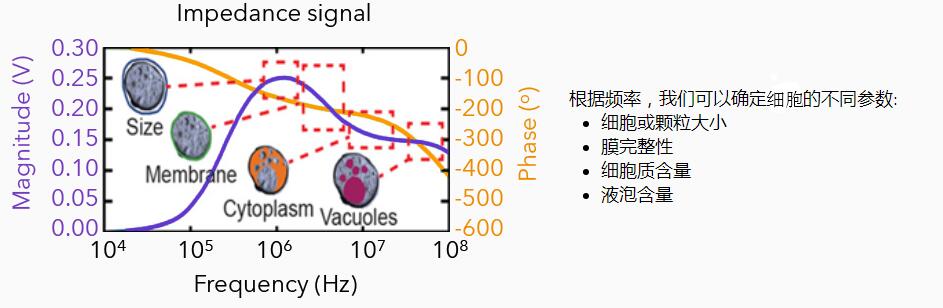 阻抗譜是一種通過(guò)在嵌入微流體芯片的兩個(gè)電ji之間施加電場(chǎng)來(lái)測(cè)量細(xì)胞或粒子的電阻和電容特性的方法。當(dāng)每個(gè)細(xì)胞流過(guò)電ji時(shí),電場(chǎng)受到干擾。