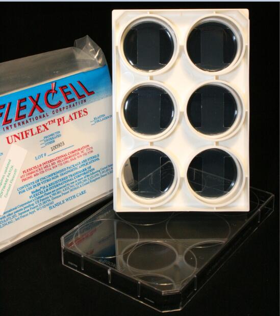 High throughput flexible-bottomed culture plates used with flexercell® Tension Systems to apply up to 8% equibiaxial strain to cells in monolayer culture.