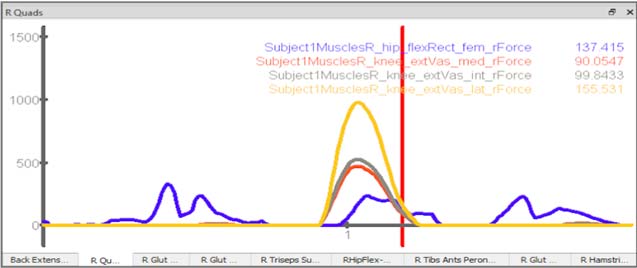 對肌肉應用顏色和不透明度以可視化募集水平。繪制單個肌肉力量以了解單個肌肉的相對貢獻和排序。 比較肌肉力矩和外部關節(jié)力矩。 通過比較內(nèi)部肌肉力矩與總關節(jié)力矩的總和來分析優(yōu)化的質(zhì)量。