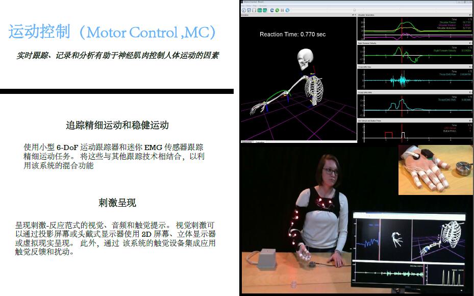 該系統(tǒng)從豐富分析工具集合中生成的數(shù)據(jù)可立即通過數(shù)據(jù)輸出的圖形顯示進行回放。 令人驚嘆的 3D 計算機渲染對象動畫可以被視為骨架、簡筆畫或人形。集成使用市場上廣泛硬件實現(xiàn)對人體運動、大腦活動、眼球運動、肌肉募集和作用在身體上的外力實時測量。