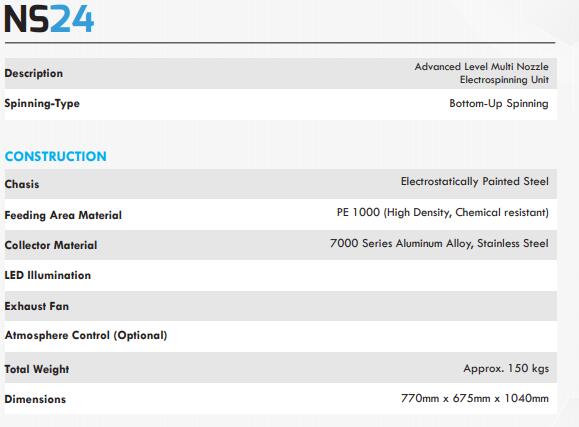 NS 24是Inovensozui通用、zui先進(jìn)的實(shí)驗(yàn)室規(guī)模系統(tǒng),也是我們zui暢銷的型號,quan球知名大學(xué)和公司安裝了50多臺。該靜電紡絲單元能夠在各種收集器上收集納米纖維:平板收集器、具有2000 rpm高速的轉(zhuǎn)鼓收集器,用于獲得良好排列的納米纖維。它還可以任選地容納不同尺寸的旋轉(zhuǎn)棒收集器,以獲得被稱為管狀納米纖維膜的納米纖維管狀結(jié)構(gòu),其可以用作人造血管。該型號有12個噴嘴,但也可用于小型實(shí)驗(yàn)室生產(chǎn)的單噴嘴。
