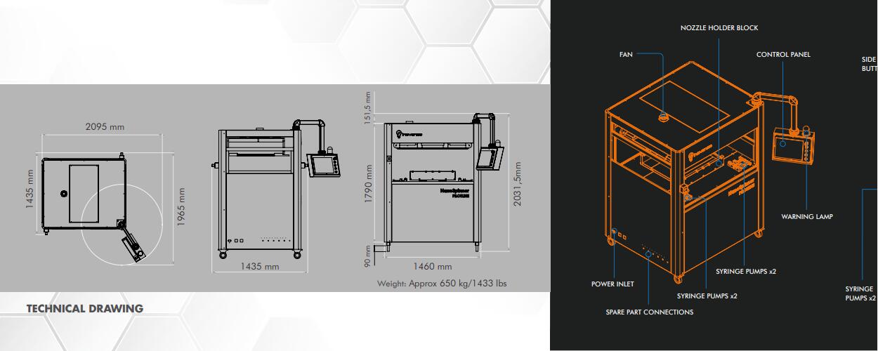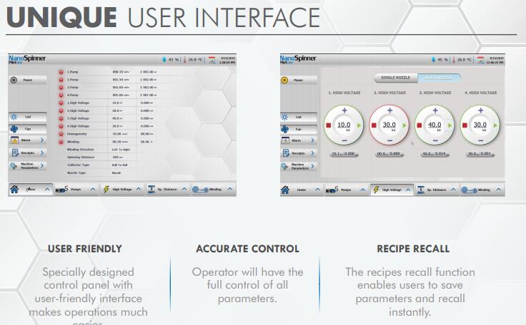 其du特的設(shè)計(jì)能夠生產(chǎn)納米纖維和復(fù)合材料,它容納4個(gè)注射泵和4個(gè)高壓電源,使其能夠同時(shí)與多達(dá)4種不同的聚合物一起工作,du立控制。