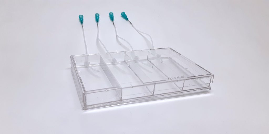 能夠提供壓縮刺激。 它適用于培養(yǎng)在體內經歷壓縮刺激的組織(即軟骨,骨骼,牙齒等)。 三、多芯片組合模塊 可以把4個可牽張或壓縮的芯片整合在一起,12個微結構,允許機械刺激每個平臺,并以wu菌方式光學監(jiān)控培養(yǎng)物